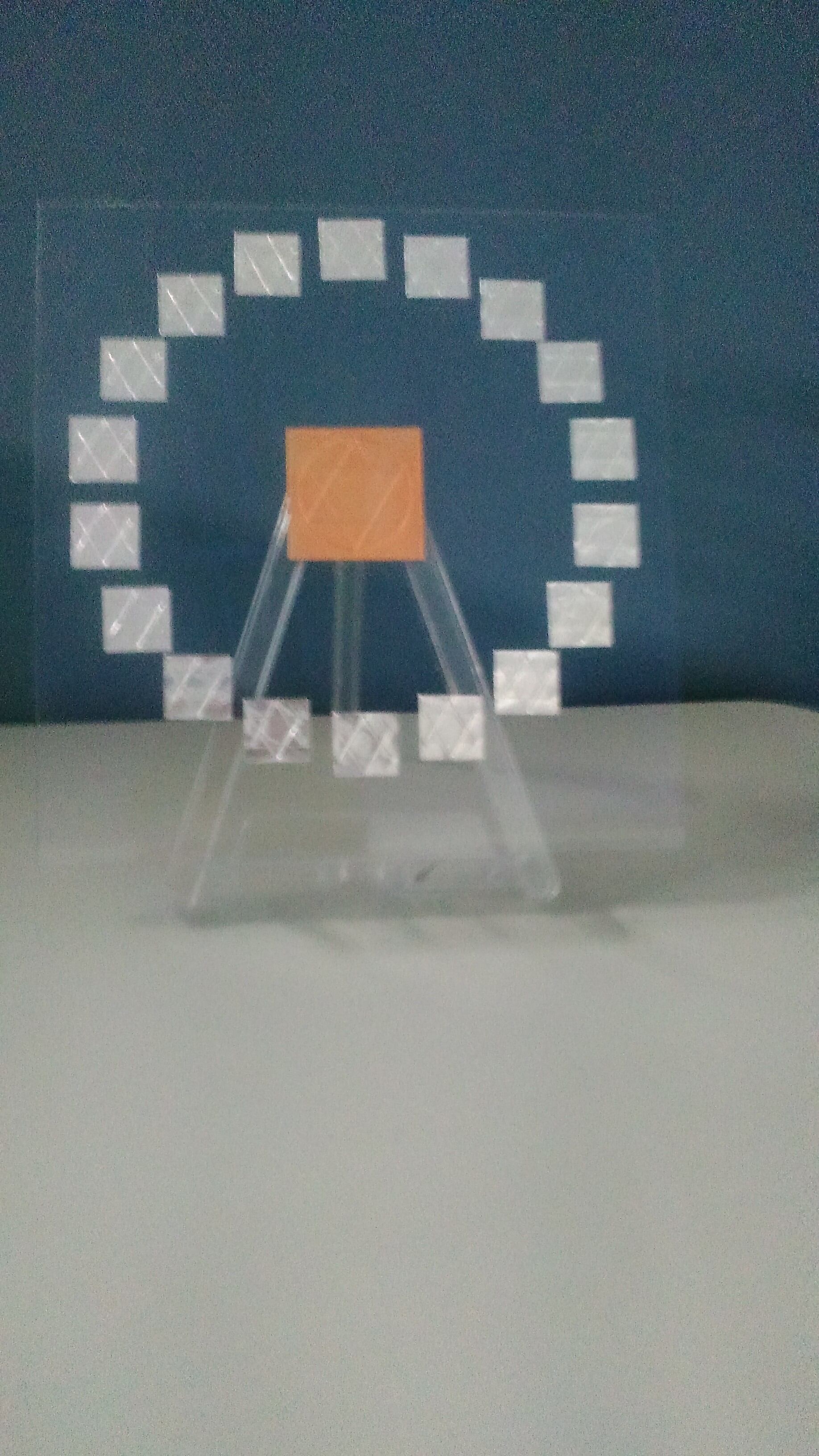 六芒星18個と真ん中に丸で囲われた六芒星を、泰澄大師の故郷で作られた光を反射しない樹脂板に配置してあります。