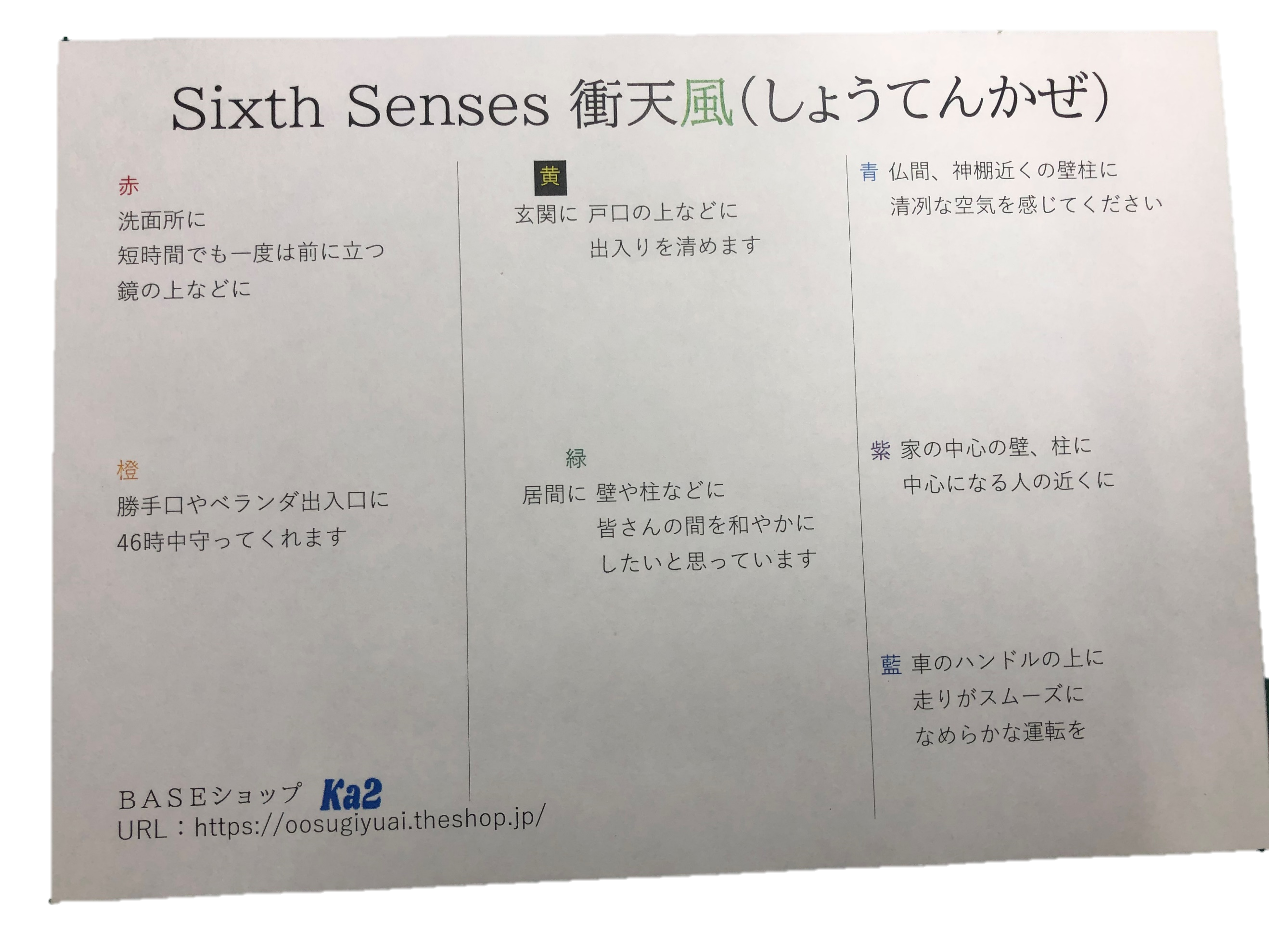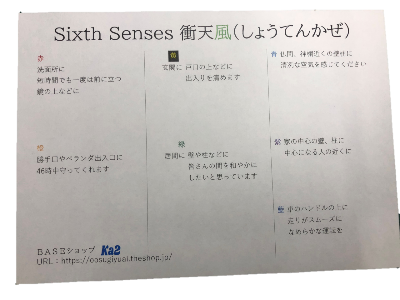 家の各所に貼られた方は、家がすっきりして清冽な感覚になったそうです。