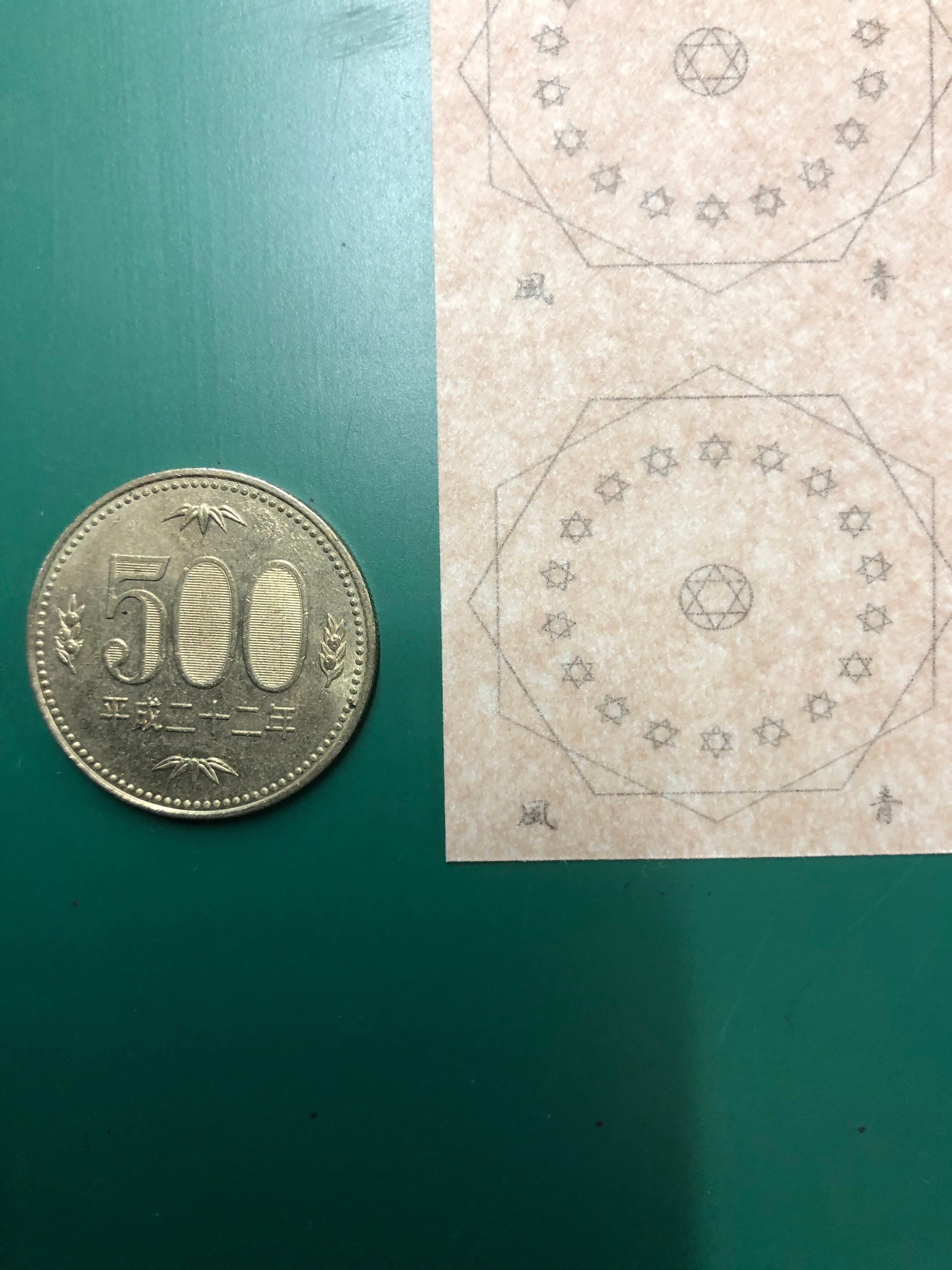 周囲に18個と中心に1個配置された、神紋と周囲を囲む六角形の持つパワーを、実感してください。